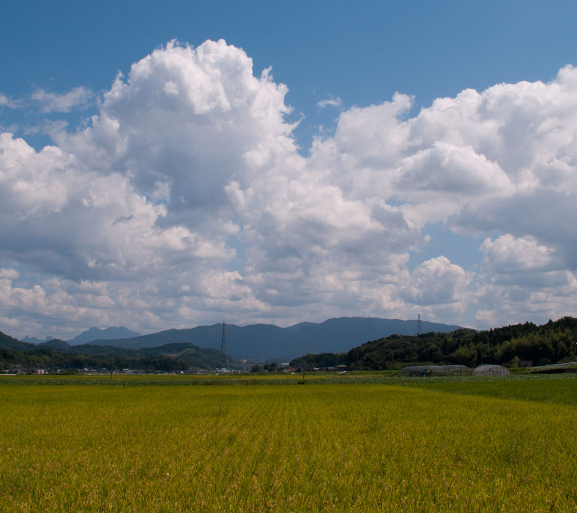 空は天頂に向かって水色から濃藍までのグラデーションで